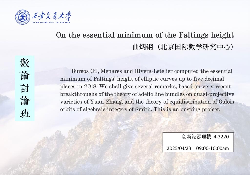 【数论讨论班】 北京国际数学研究中心曲炳钢 (2025.04.23)