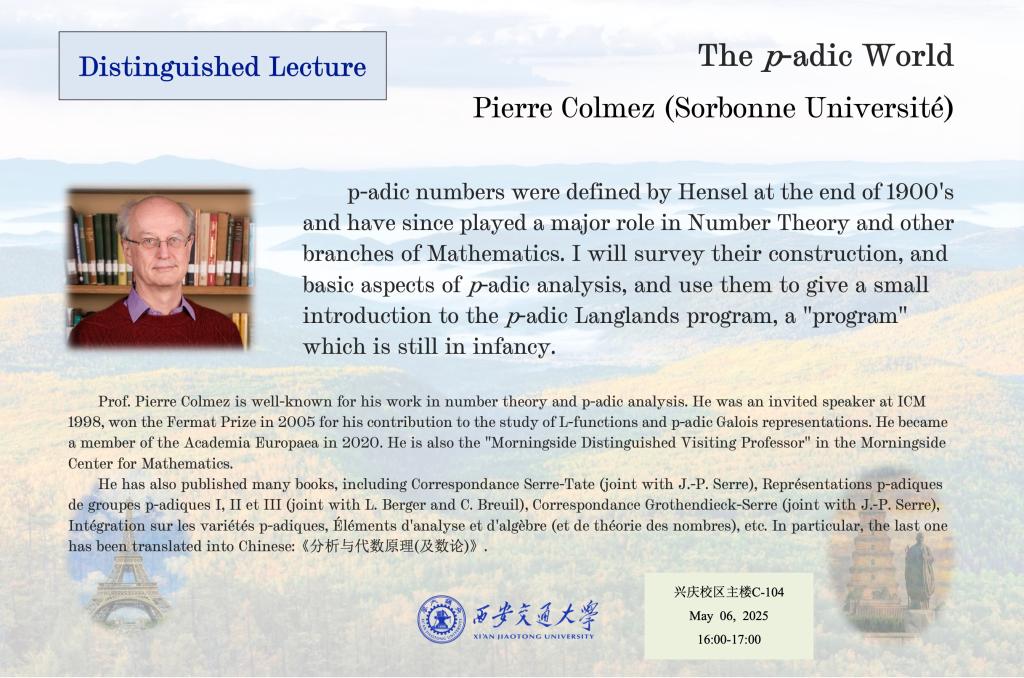 【Distinguished Lecture】欧洲科学院院士Pierre Colmez教授 (2025/05/06)