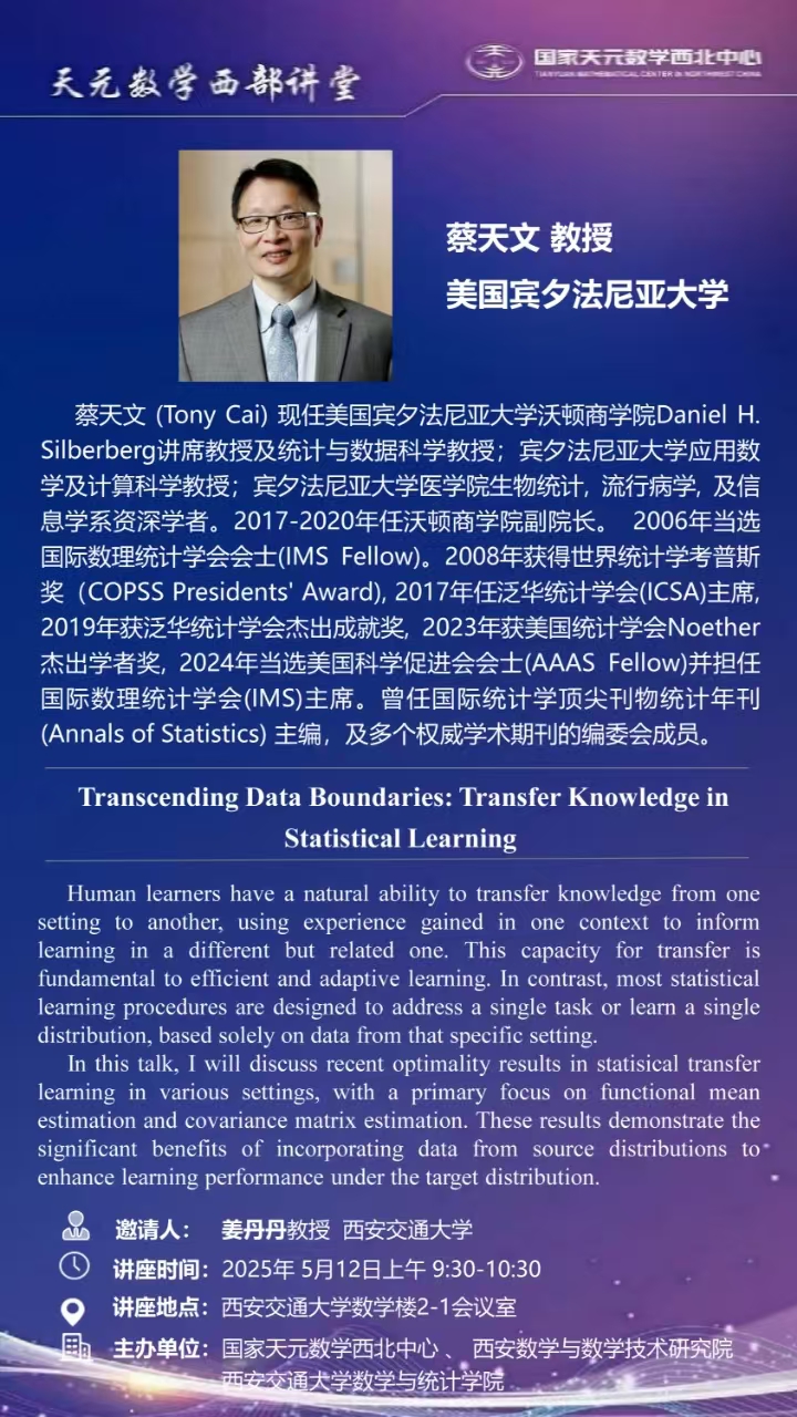 【天元数学西部讲堂】美国宾夕法尼亚大学蔡天文教授学术报告