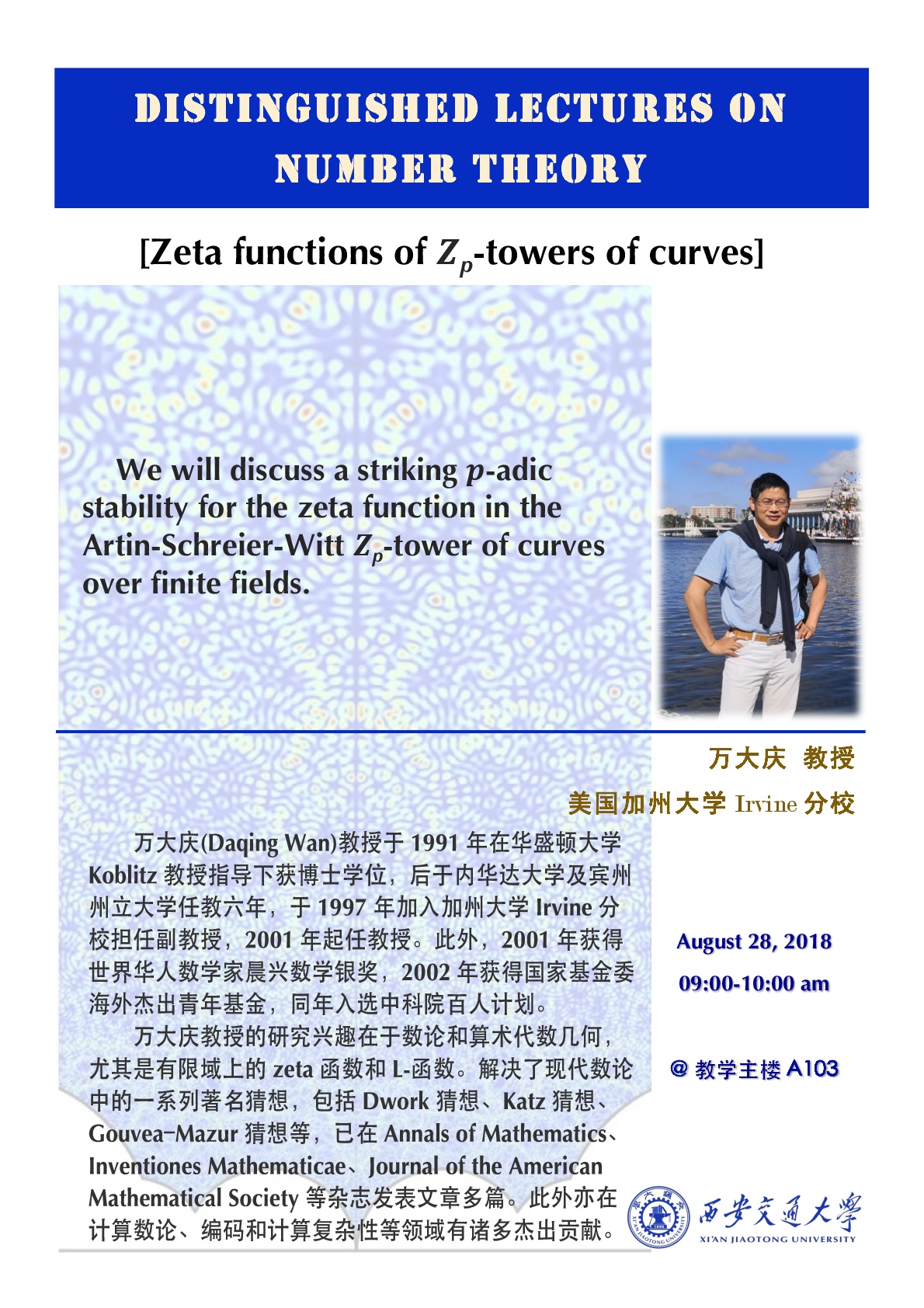 【数论系列活动18-9】加州大学Irvine分校万大庆教授学术报告通知