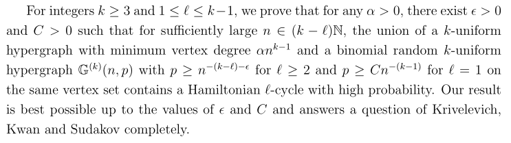 报告题目:Hamiltonicity in Randomly Perturbed Hypergraphs