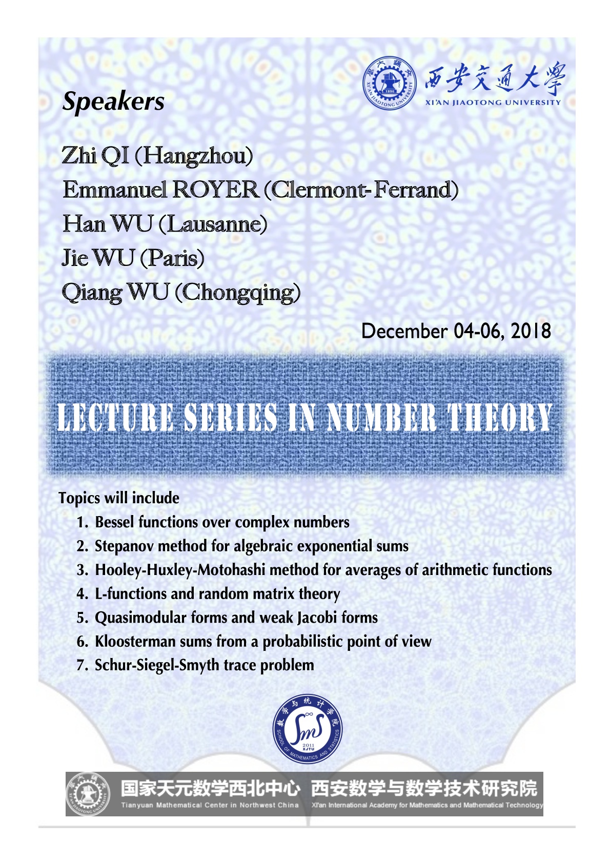 【数论系列活动18-11】Lecture Series in Number Theory, 2018.12.04-06