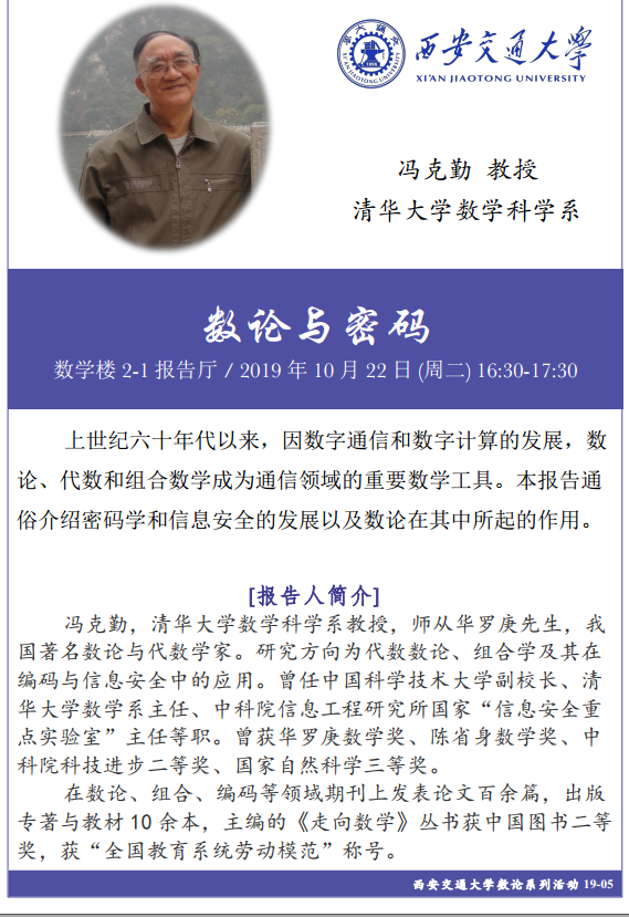 上一篇:【数论系列活动19-05】清华大学冯克勤教授学术报告通知