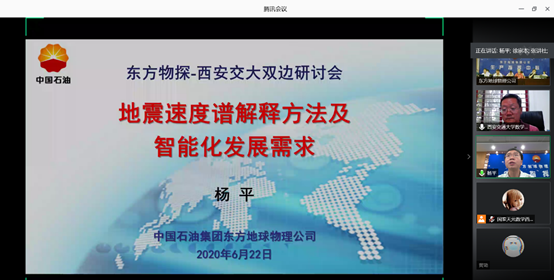 陕西国家应用数学中心“与企业家对话”序列活动之一:“东方物探-西安交大双边研讨会”于6月22日在线上召开。活动由国家天元数学西北中心、陕西国家应用数学中心共同举办。会议邀请中国石油集团东方地球物理公司技术专家杨平、郭锐,南开大学邹长亮教授、南京审计大学黄性芳博士做学术报告。来自中国石油集团东方地球物理公司、一楼一凤