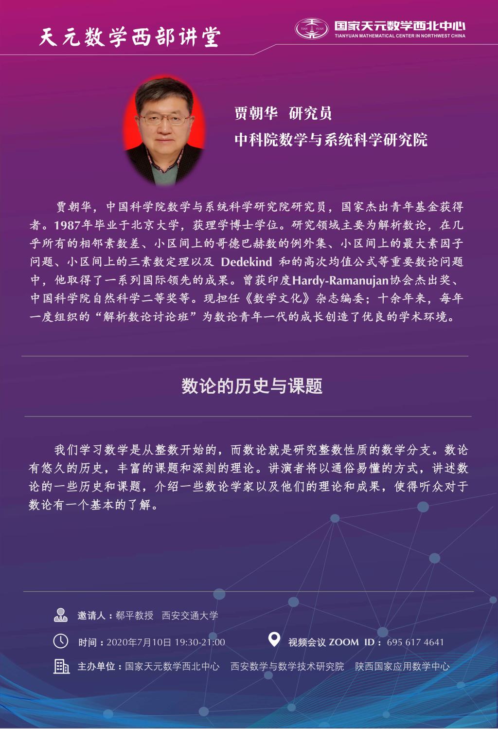 【天元数学西部讲堂】贾朝华(2020.07.10)