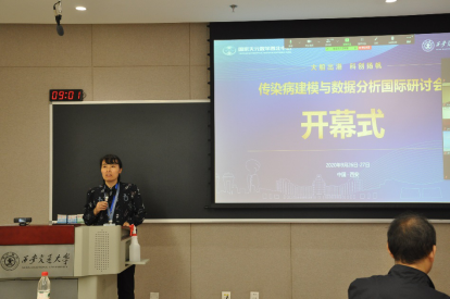 会议特别邀请数学与生命科学交叉研究中心学术委员会主任、加拿大约克大学吴建宏教授致开幕辞。他高度肯定了西安数学与数学技术研究院数学与生命科学交叉研究中心的工作,并指出中心聚焦于我国重大疾病诊断、健康评估和重大或突发性传染病防治中亟待解决的关键科学问题,为国家公共卫生、疾病防控等部门的决策提供咨询与建议;尤其在此次新冠疫情爆发之际,中心联合陕西师范大学生物数学团队及加拿大科研团队,用数学模型预测疫情,提出有效防疫措施,为打赢疫情防控阻击战发挥了重要作用。