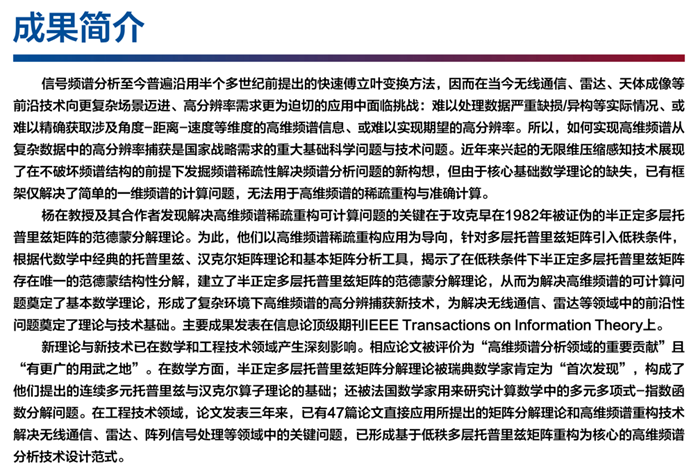 十大数学理论成果(五)半正定多层托普里兹矩阵的范德蒙分解理论及其应用研究