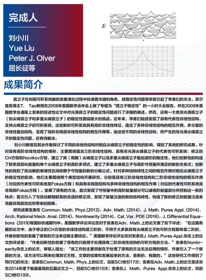 十大数学理论成果(七)尖峰孤立子的轨道稳定性