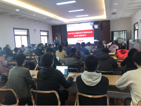 在数学楼2-1会议室举办党史学习教育动员会暨党史专题报告会。学院党政领导、中心组成员、全体教师党员和学生党员代表现场出席会议,创新港师生通过在线直播进行学习。会议邀请到马克思主义学院中国近现代史研究所所长马金玲老师做党史专题报告。党委副书记李义宝主持会议。