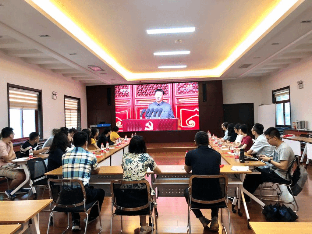 7月1日上午8点,庆祝中国共产党成立100周年大会在北京天安门广场隆重举行。中共中央总书记、国家主席、中央军委主席习近平发表重要讲话。一楼一凤 党委组织领导干部、党委委员、党支部书记、新发展党员代表、入党积极分子代表和师生党员代表在数学楼2-1会议室和创新港泓理楼,分别集中收看庆祝建党百年活动直播,认真学习习近平总书记重要讲话精神。