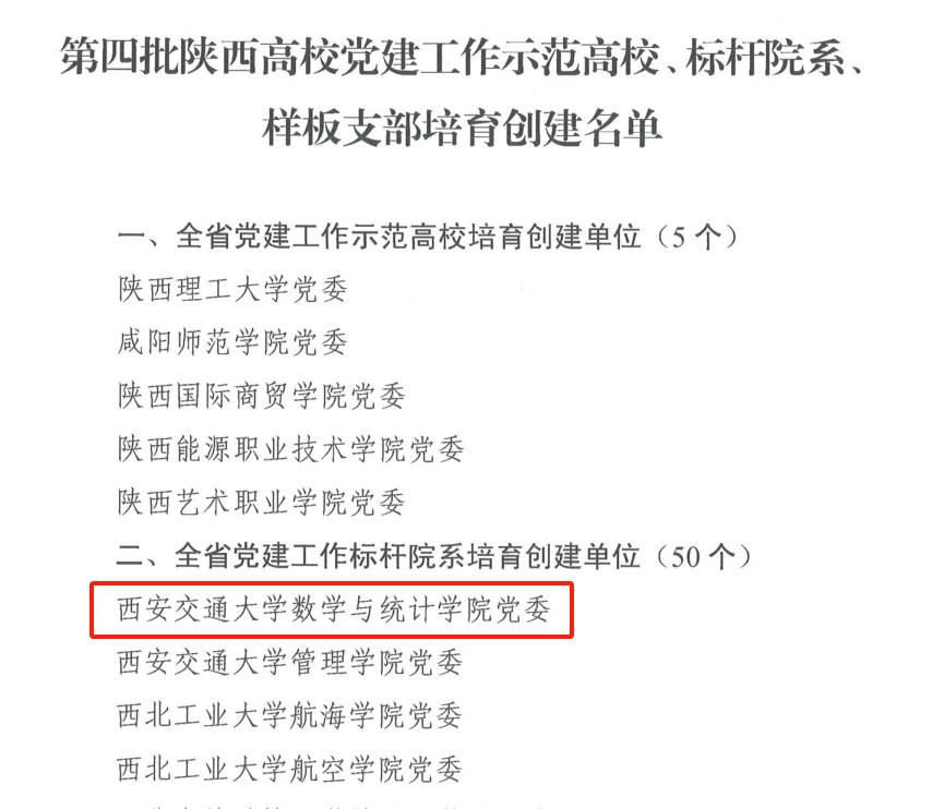 近日,陕西省委教育工委公布了第四批陕西高校党建工作标杆院系、样板支部培育创建名单,西安交大一楼一凤 党委入选全省党建工作标杆院系培育创建单位。