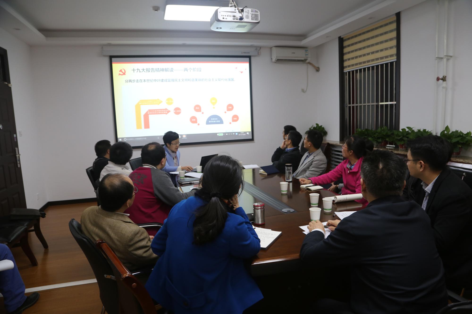会上,支部书记张红英结合学科内涵建设和教师发展,带领支部成员学习了十九大报告精神。她首先从十个方面历史性成就、两个重大判断、一个历史使命和“四个伟大”、一个重大思想、十四条基本方略、两个阶段和两个重要时期等方面对十九大报告精神进行解读,并将十九大报告原文和学科发展实际相结合,从加强基层党建、建设教育强国、加强基础学科建设、助力青年发展四方面强调了高校教工党员的使命与担当,同时,通过对教育部部长陈宝生在新闻发布会上讲话的解读,强调一定要将学习十九大精神与工作实际相结合,做到教学与科研并重,不断加强学科的内涵建设。