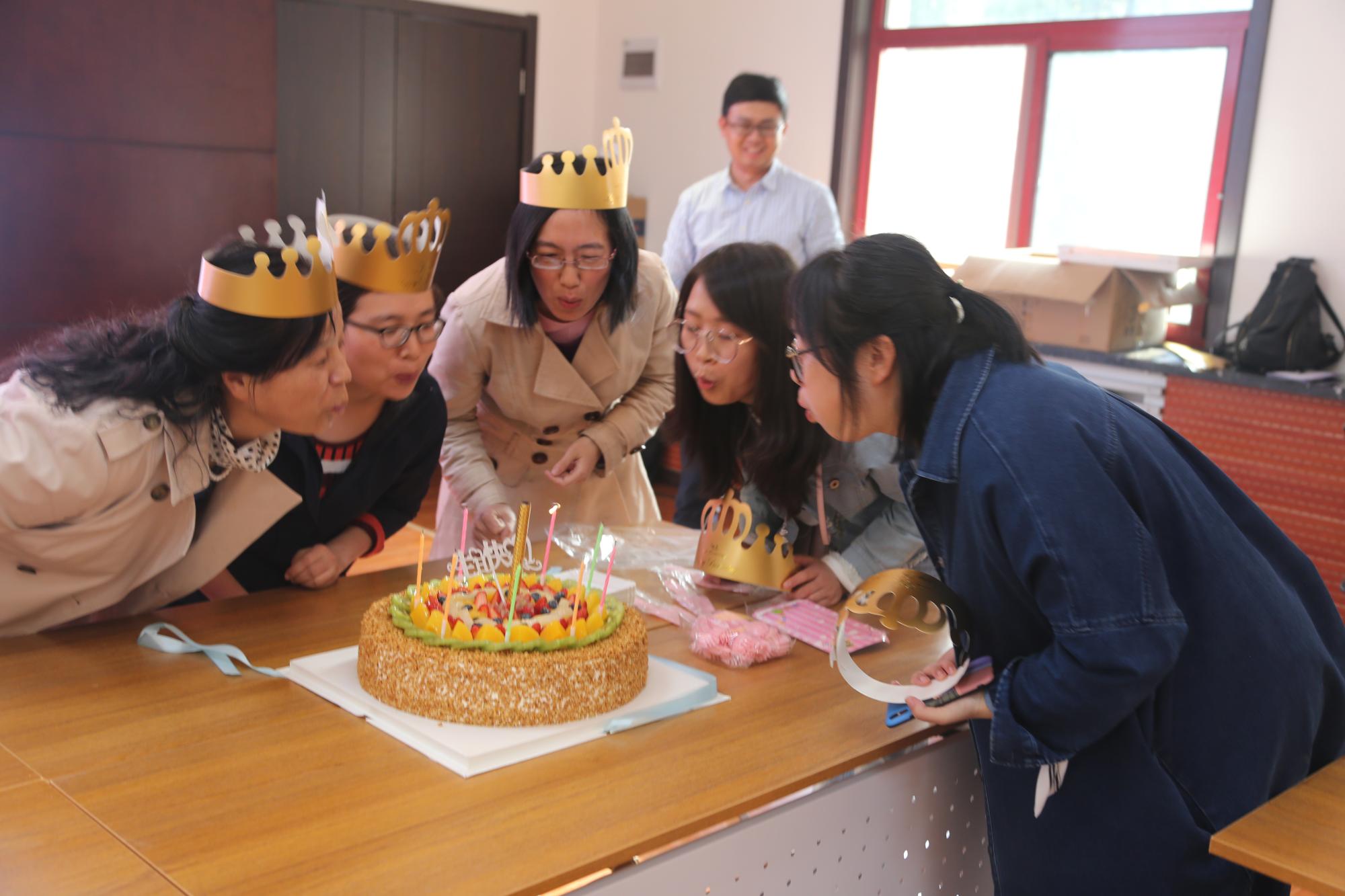 于2019年4月3日在数学楼2-1会议室为本年度第一季度过生日的教职员工举办了一场别开生面的集体生日会活动。