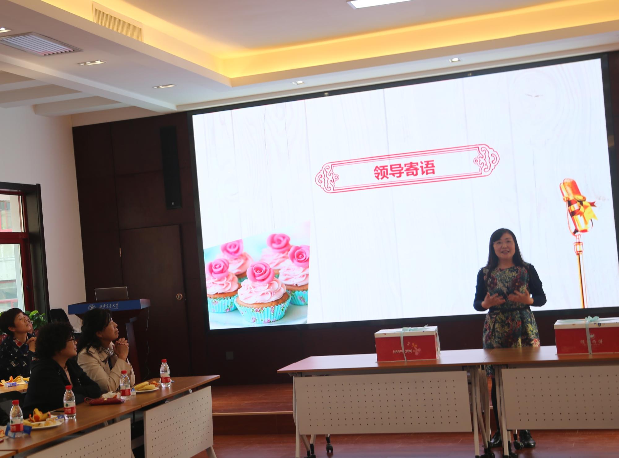 学院工会主席王飞老师主持了该活动,学院副书记颜莉老师代表学院为过生日的教职员工献上了诚挚的祝福,并为现场的寿星和老师们送上了生机勃勃的小绿植作为礼物。
